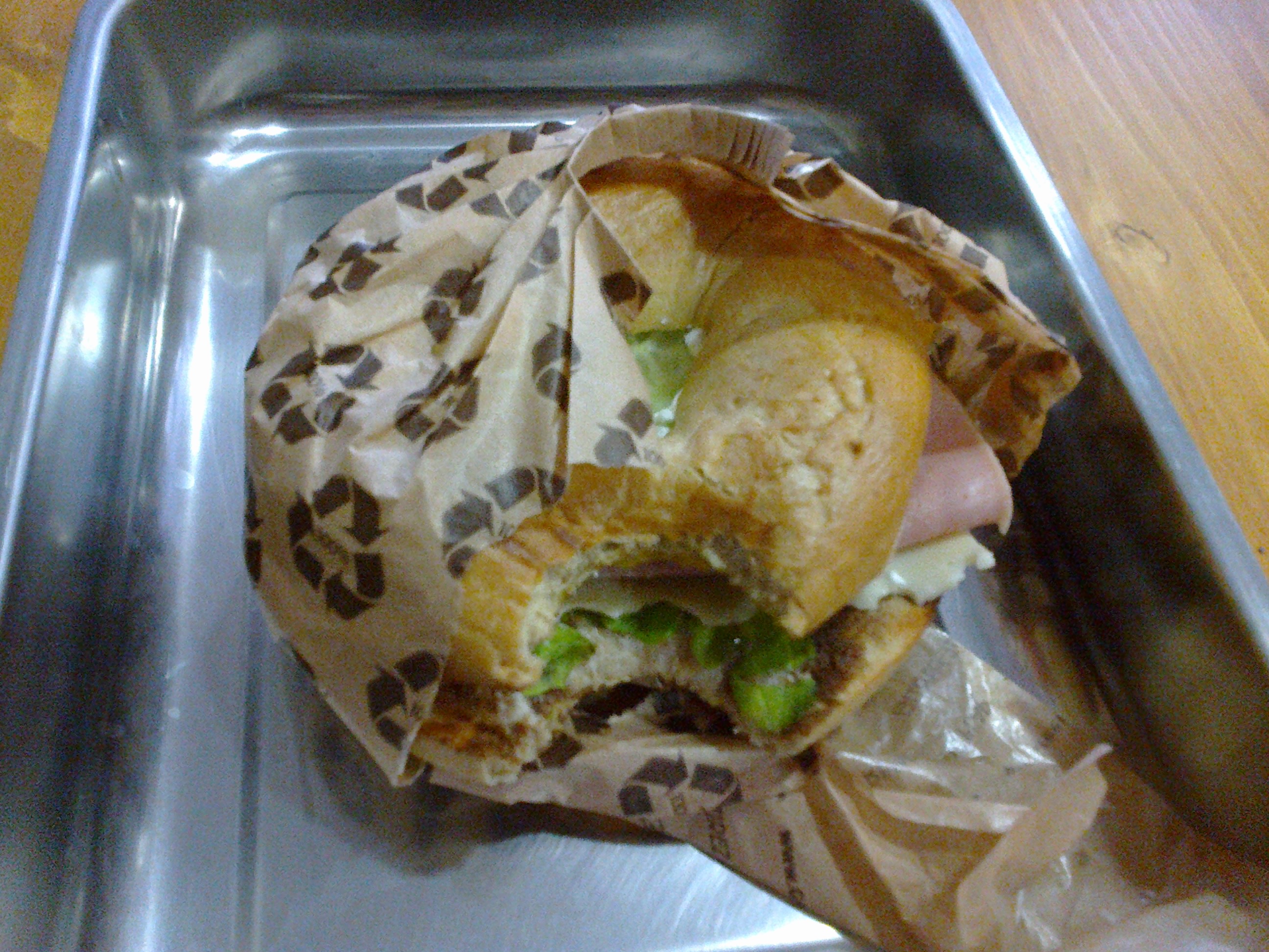 J’ai découvert les bagels quand je suis partie en stage en Allemagne. Là-bas, je passais chaque dimanche à la Back Factory pour prendre mon bagel sésame-pavot garni de frisch Käse (du fromage frais), tomate, concombre et salade. Quand il a fallu que je rentre en France, j’étais désolée à l’idée de devoir me passer de ce genre de sandwich. Je commençais à me languir fortement des bagels quand Ô miracle! Catering a ouvert! La première fois que j’y ai mangé, j’étais tellement affamée et excitée à l’idée d’enfin pouvoir manger un bagel que j’ai oublié de le prendre en photo!