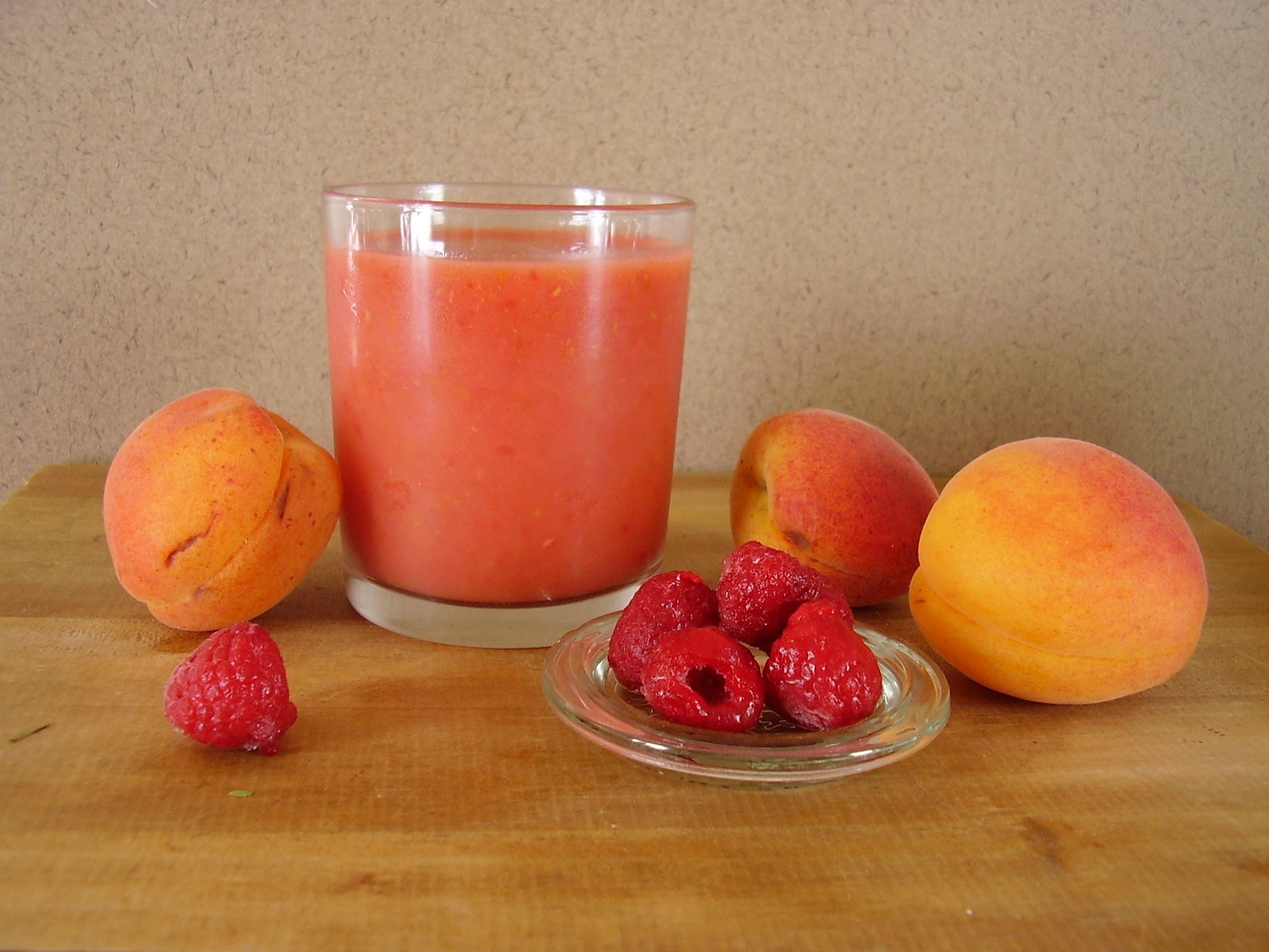 Vous ne comprenez pas le nom de ce smoothie à base d’abricot, d’orange et de framboise ? Allez faire un tour sur la page Oasis : be fruit, ça devrait vous éclairer ! 😉 Un gentil smoothie tout doux, pour un réveil velouté et rouge-orangé ! Et si en prime vous coupez le jus d’orange avec du jus de carotte, vous aurez le cocktail parfait pour avoir un beau teint bronzé !
