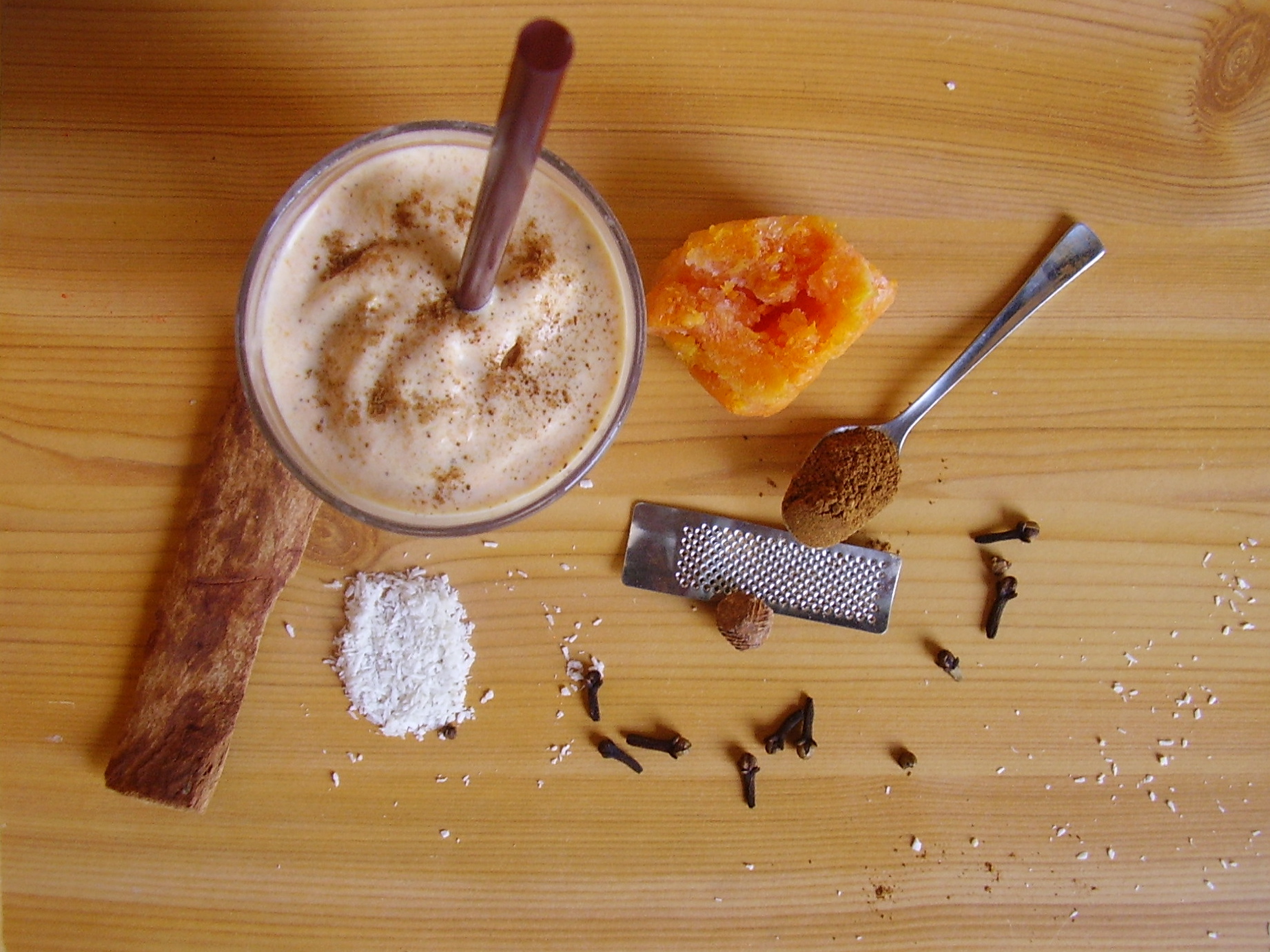 C’est un moyen sucré et rafraîchissant plutôt agréable pour déguster du potiron (ou ses cousins-cousines, le potimarron et la butternut). Heureusement qu’il y a les américains pour nous changer des traditionnelles soupes ou purées que l’on trouve par chez nous! J’ai dégotté cette recette sur le blog Spabettie.