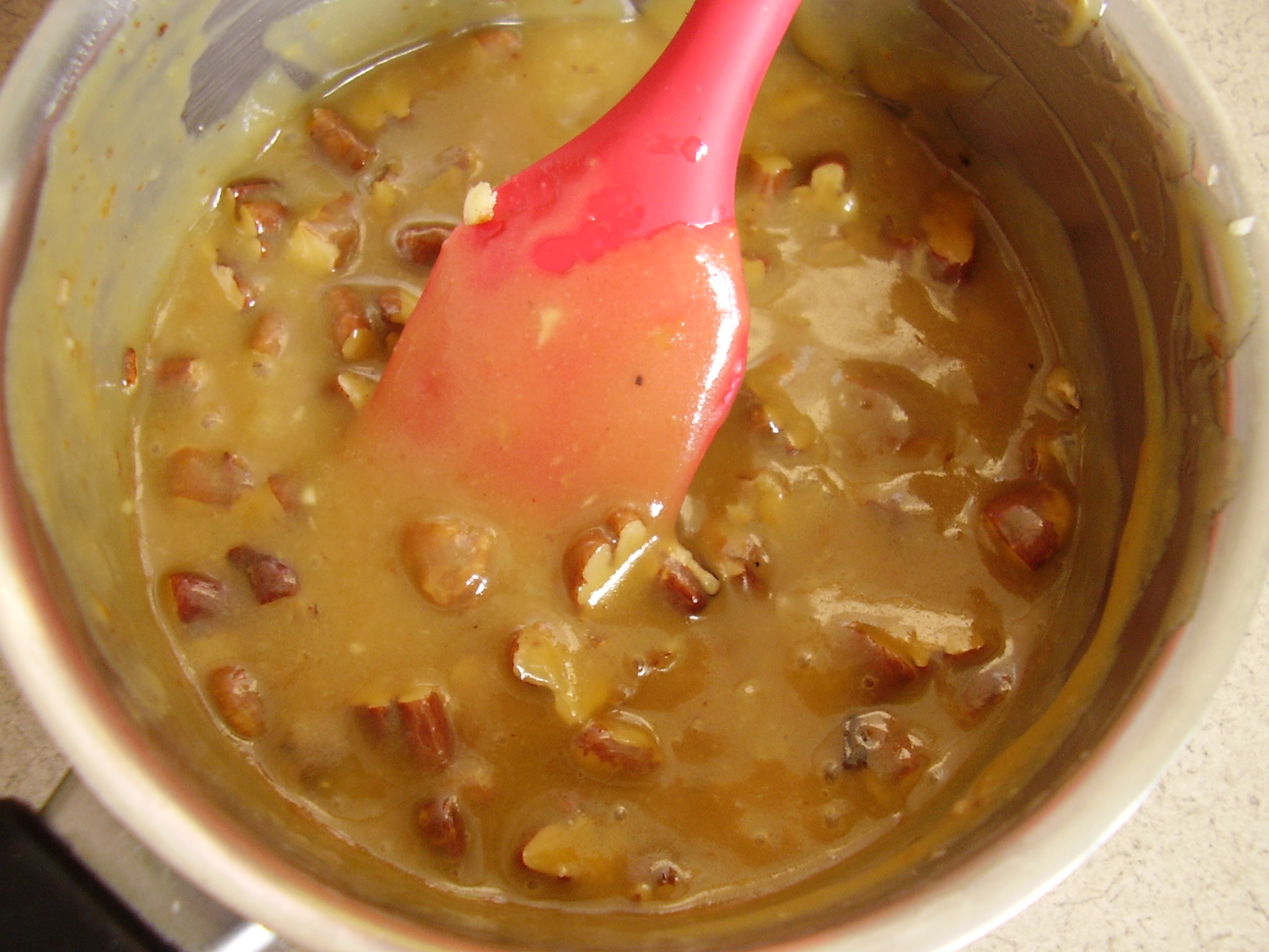 3. Hors du feu, ajoutez les noix de pécan hachées.