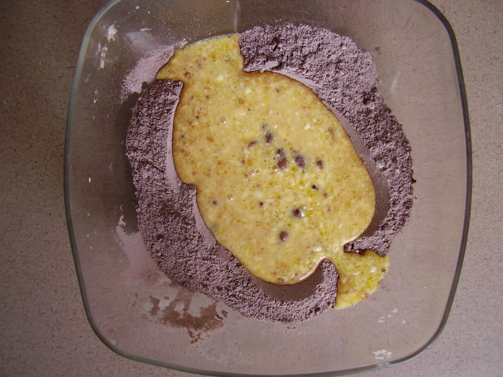 - Mélangez d’un côté tous les ingrédients secs (farine, cacao, sucre, levure).