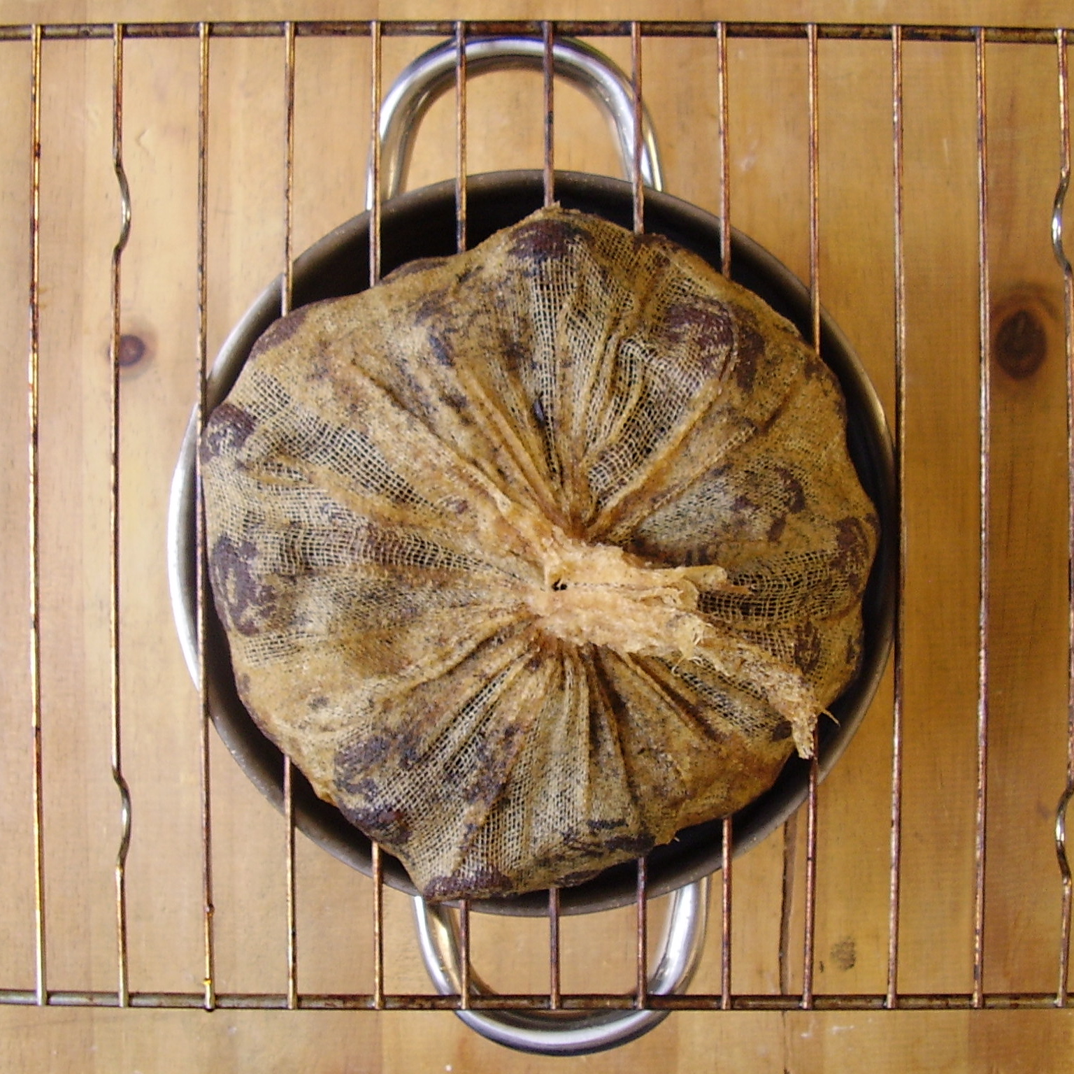 10. Au jour 5 : égouttez vos marrons, sur une grille, puis ouvrez votre petit baluchon pour mieux répartir les marrons.