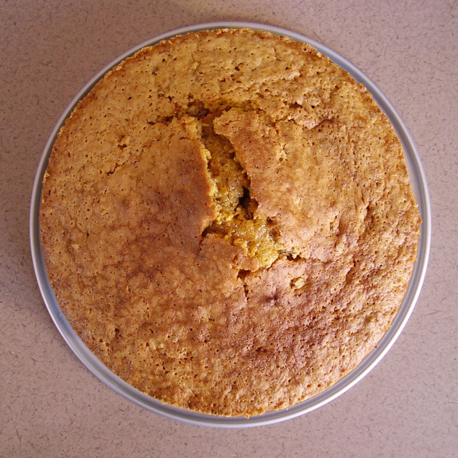 - Egalisez le dessus du gâteau et coupez le en deux disques.