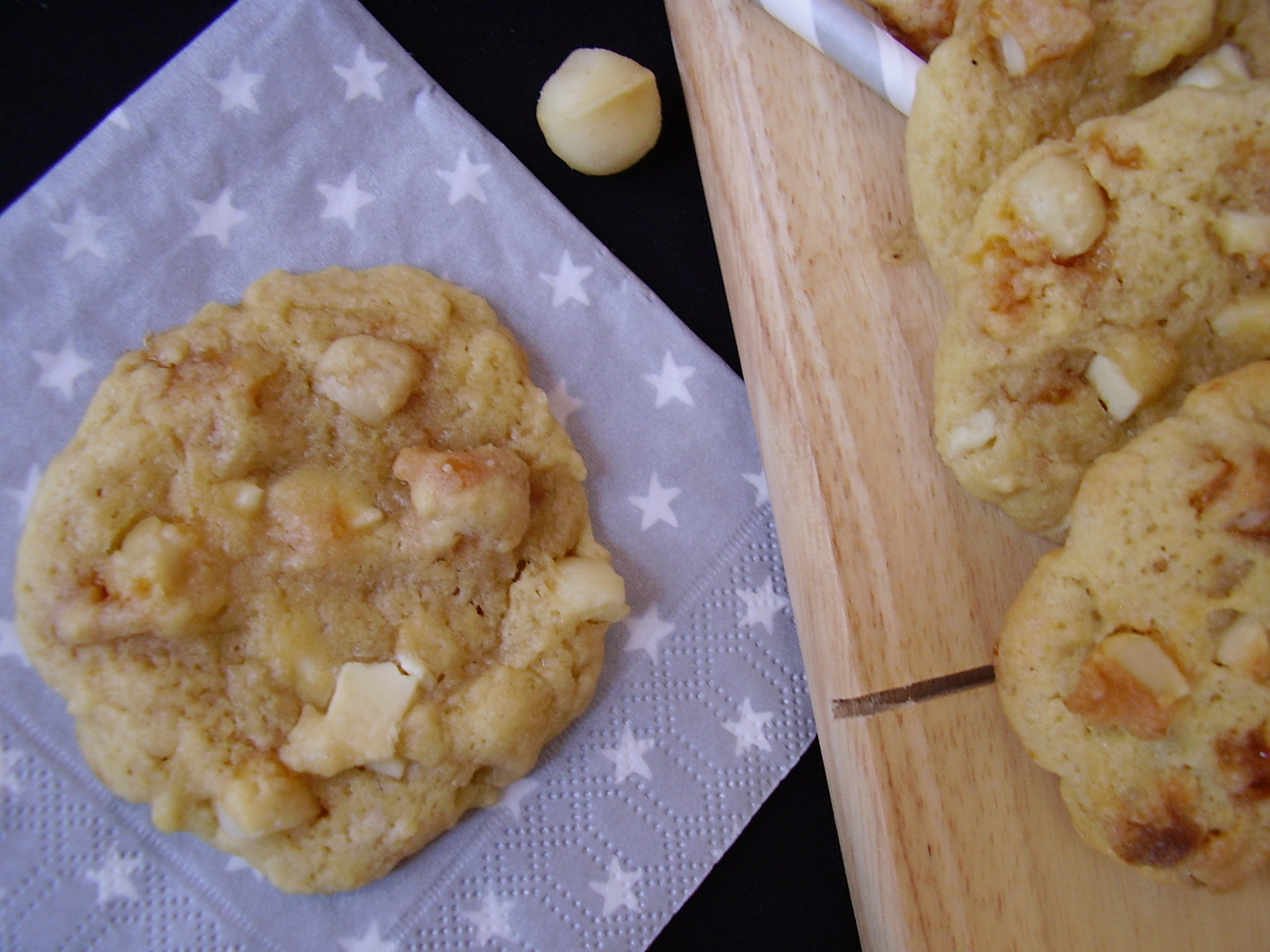 Un cookie digne de figurer parmi les glaces Ben & Jerry’s ! Imaginez des noix de macamadia grillées et salées, enrobées de caramel, réunies avec du chocolat blanc au sein d’une matrice fondante et moelleuse de cookie !!!! C’est si croquant avec les noix ! Même moi qui ne raffole pas du chocolat blanc, j’ai succombé à ces petites merveilles!