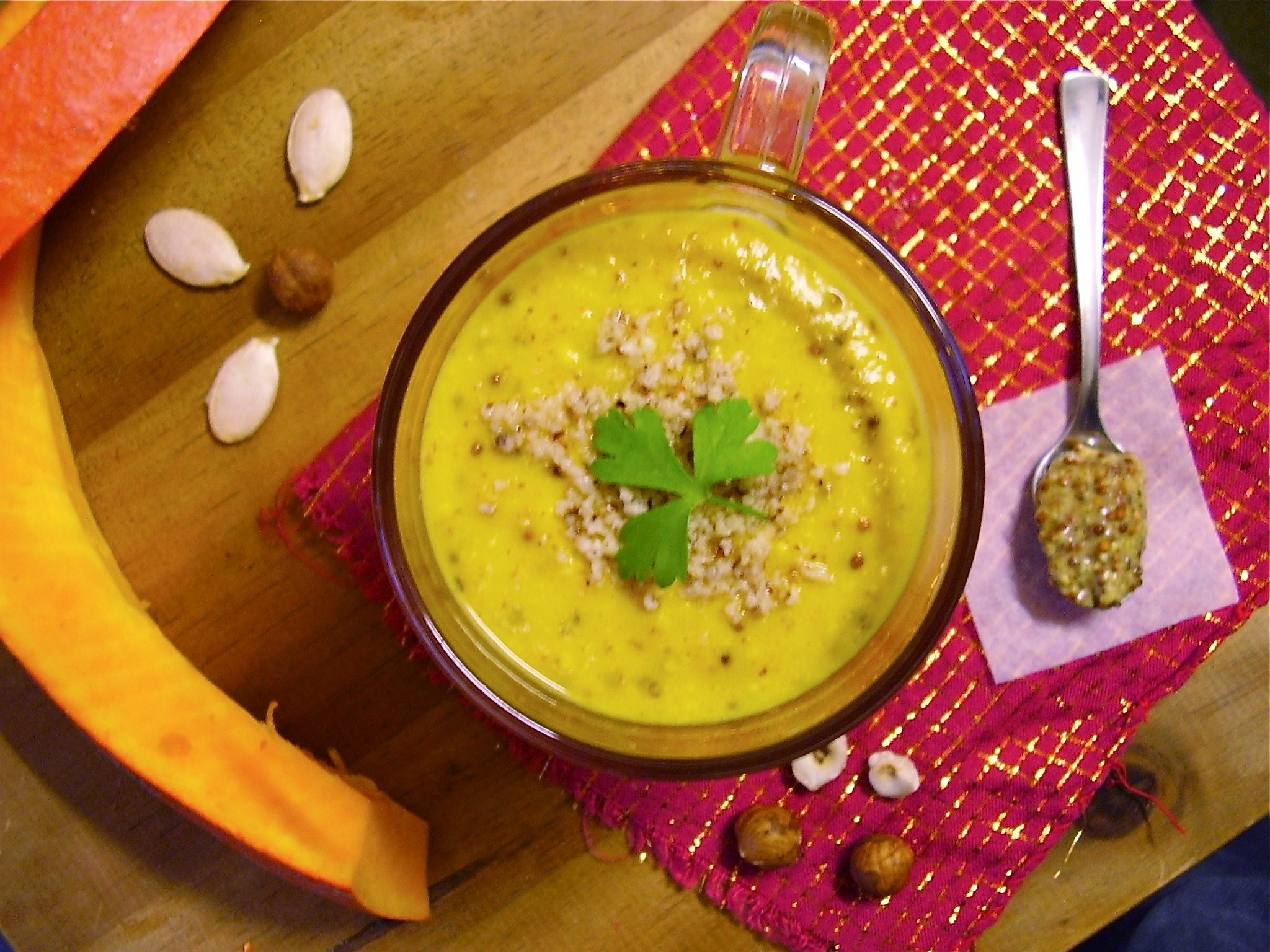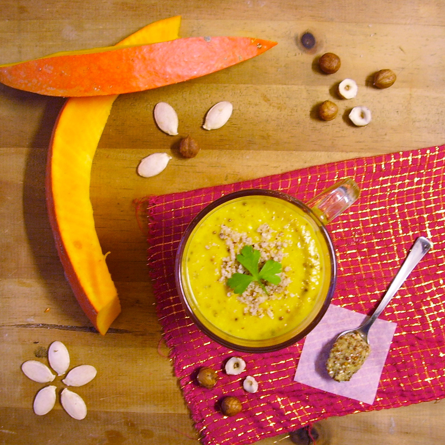 Soupe de butternut à la noisette et moutarde à l’ancienne