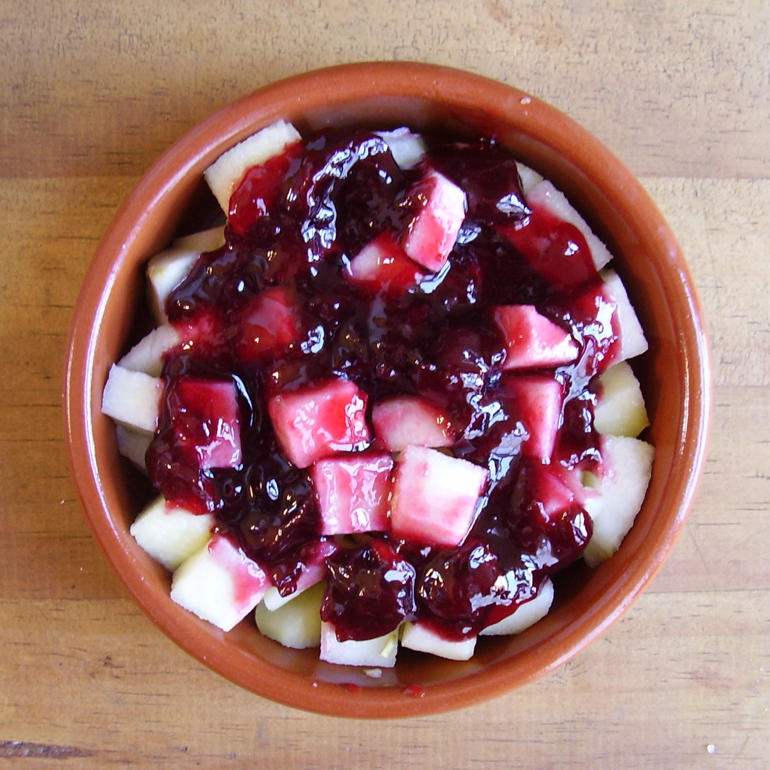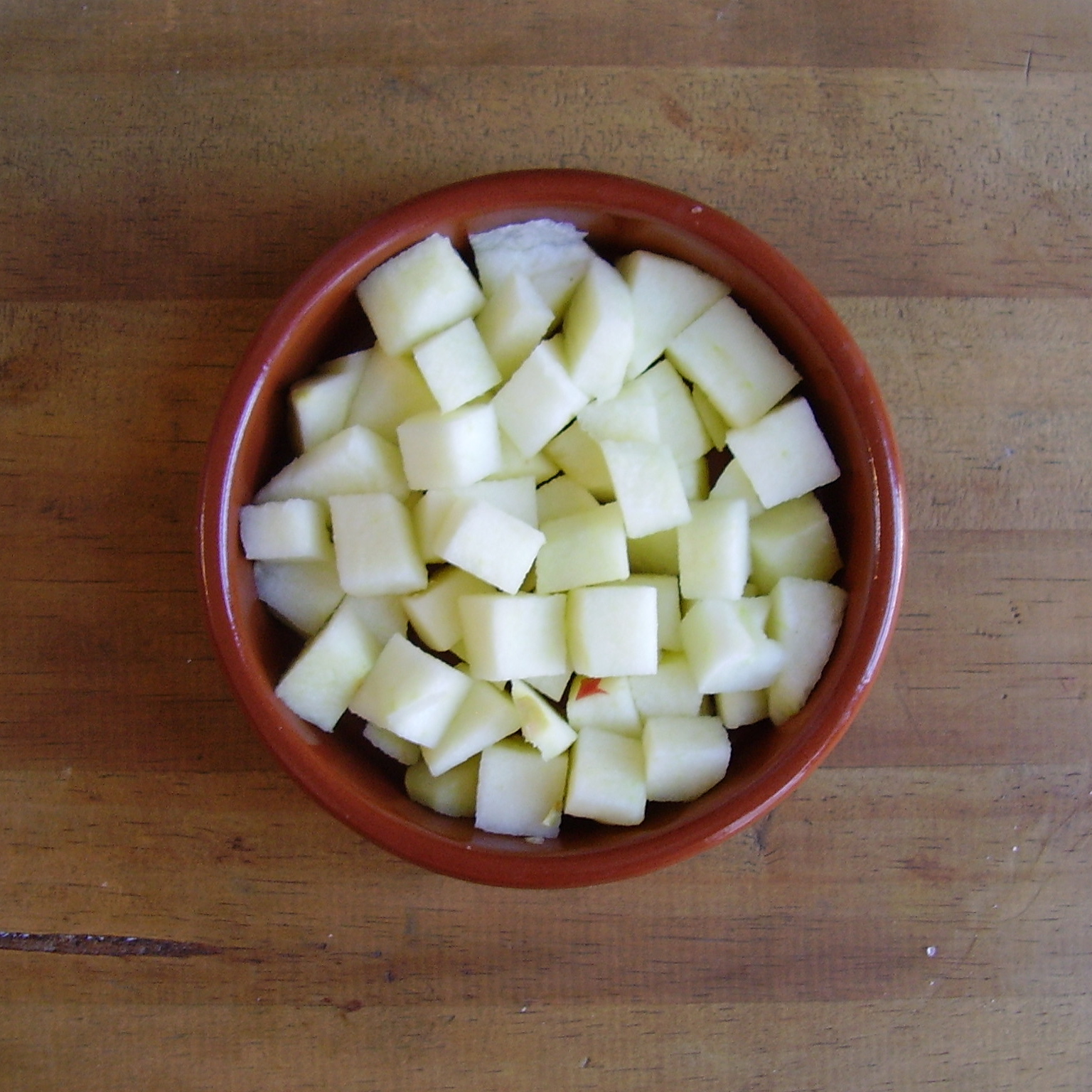 - Puis pelez et coupez la pomme en petits dés et déposez les dans un ramequin.