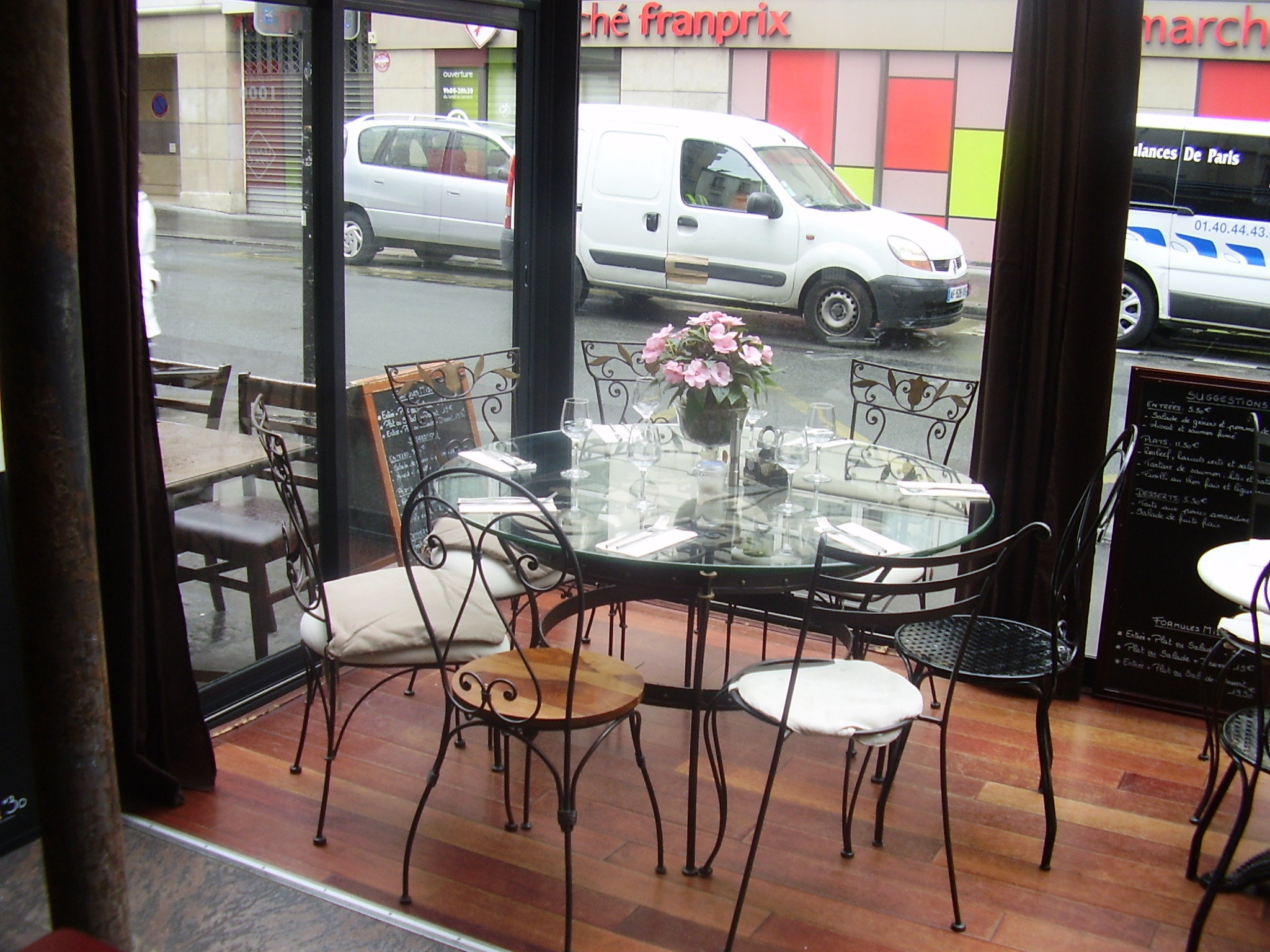 Vu de l’extérieur, l’endroit ne paie pas de mine mais une fois à l’intérieur J’ai adoré l’atmosphère très claire, sobre mais agréable avec sa petite verrière/véranda. Le mobilier faisait vraiment penser à une petite terrasse de jardin. Un petit coin où il fait bon vivre. La nourriture servie était copieuse, variée et bonne. Tout cela pour 21,5€ que je qualifierai de prix raisonnable pour un brunch (d’autant plus correct pour la région parisienne). Le brunch d’articule autour :