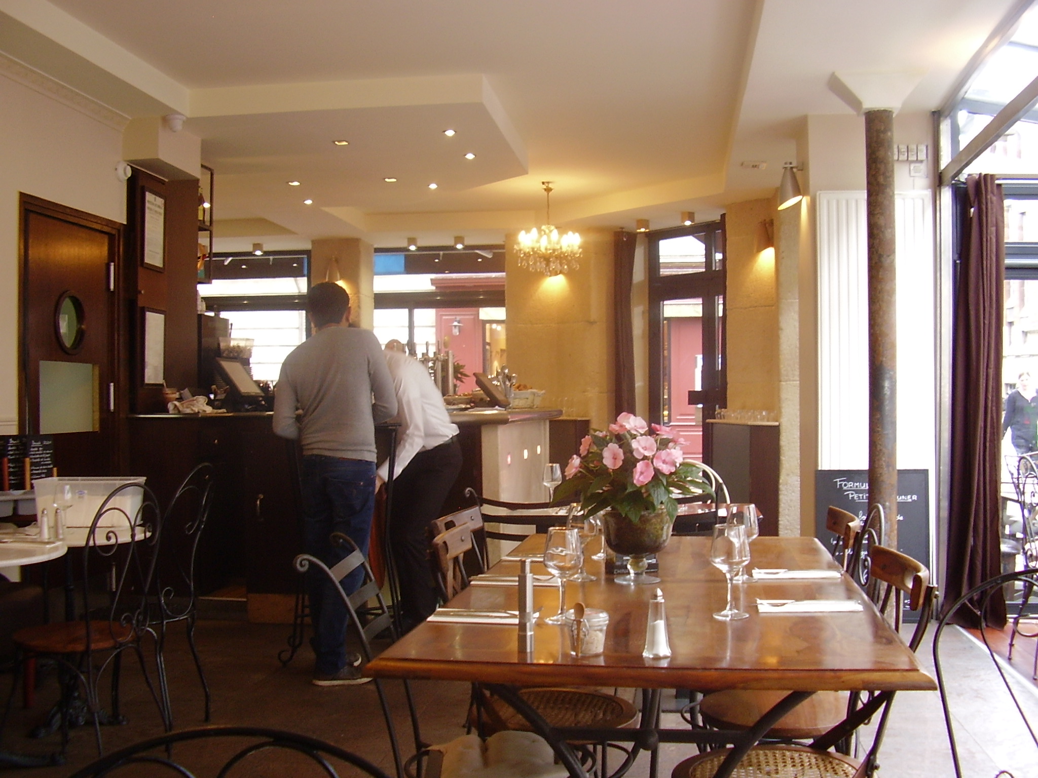 Bien sûr il y a eu des petits bémols… On s’est retrouvé un peu à l’étroit à 5 sur notre petite table ronde. Et la situation ne s’est pas arrangée quand on nous apporté les immenses assiettes salées! Cela nous a aussi un peu dérangé de ne pas avoir d’assiette pour la partie « petit-déjeuner ». Obligé de tartiner son pain à même la table, de coller de la farine et des miettes partout… Ce n’était pas très agréable.