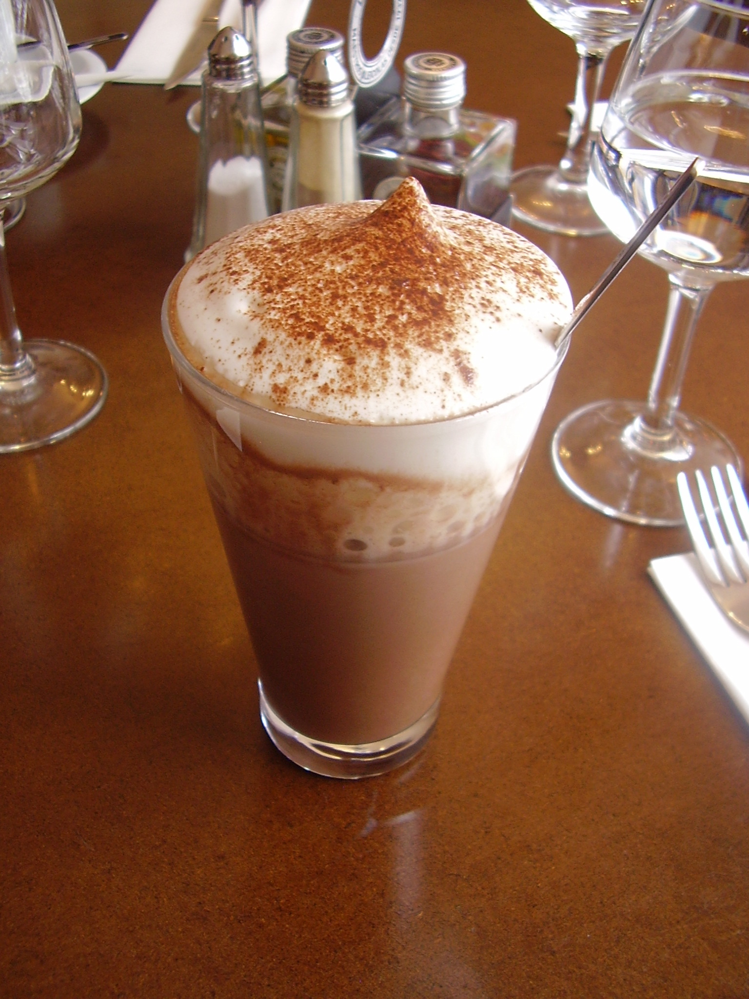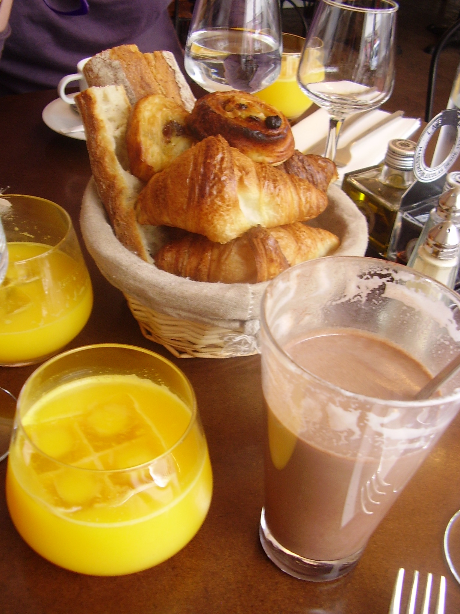 Je les ai trouvés un peu lent au niveau du service. Il a fallu une petite éternité pour nous préparer 2 chocolats chauds (fait à la machine Nespresso avec une très grosse couche de mousse de lait!). Bon c’était la serveuse grincheuse qui s’en occupait, elle avait peut-être pas envie ce jour-là, j’en sais rien, mais elle avait l’air d’y mettre de la mauvaise volonté. Nous avons tout reçu au compte goutte : les boissons chaudes, la corbeille avec les viennoiseries et les morceaux de baguettes, puis le jus d’orange.