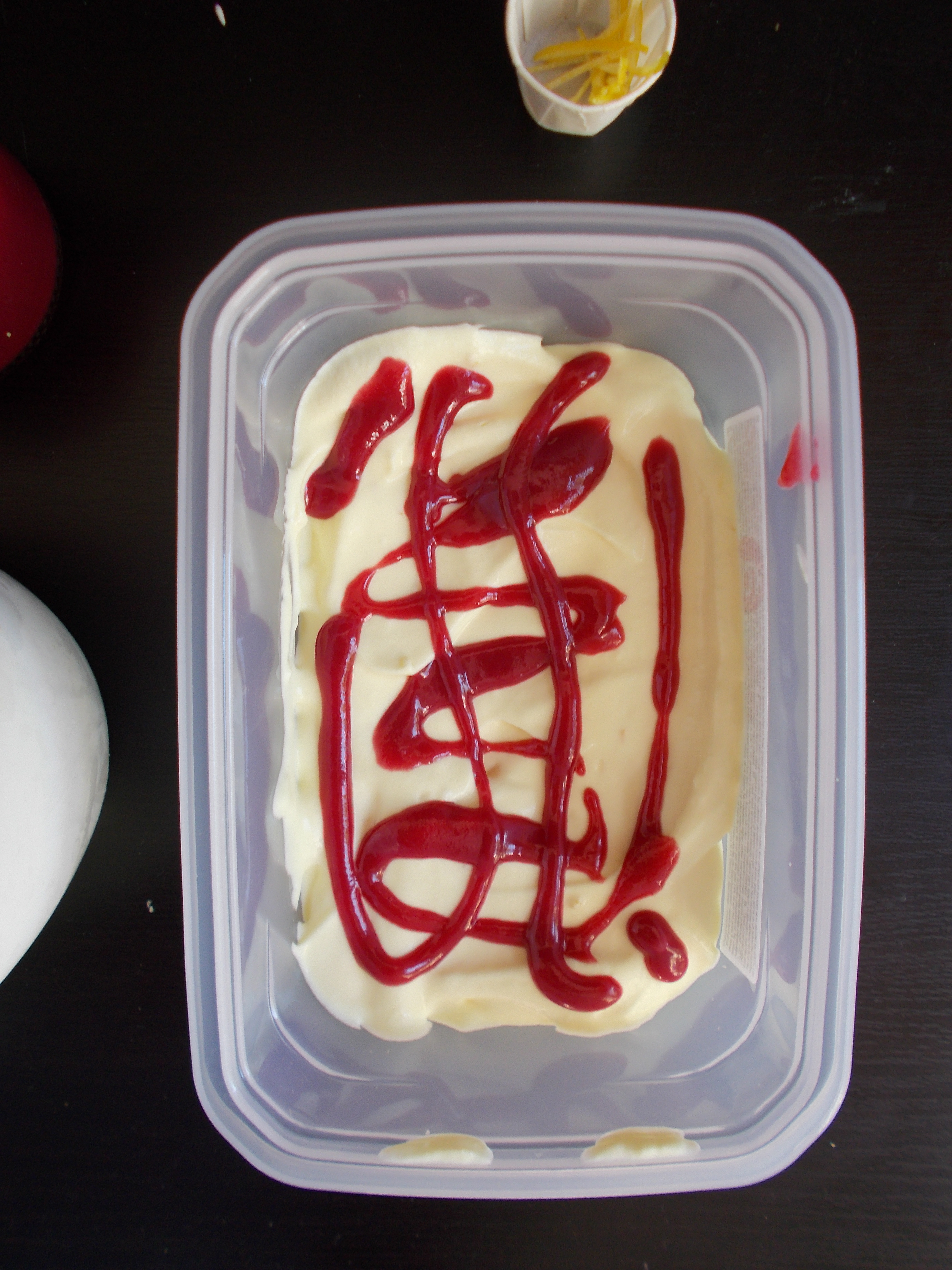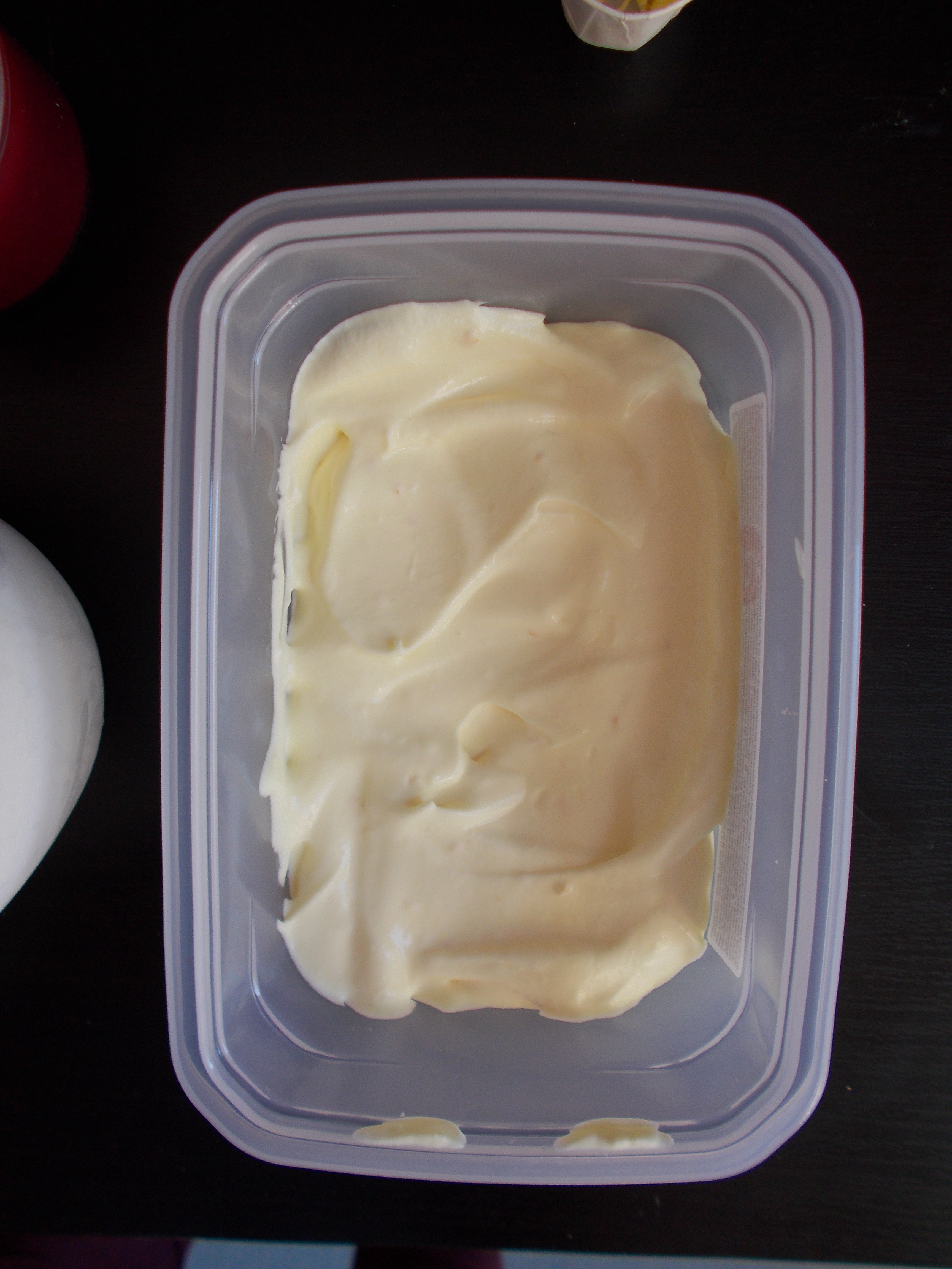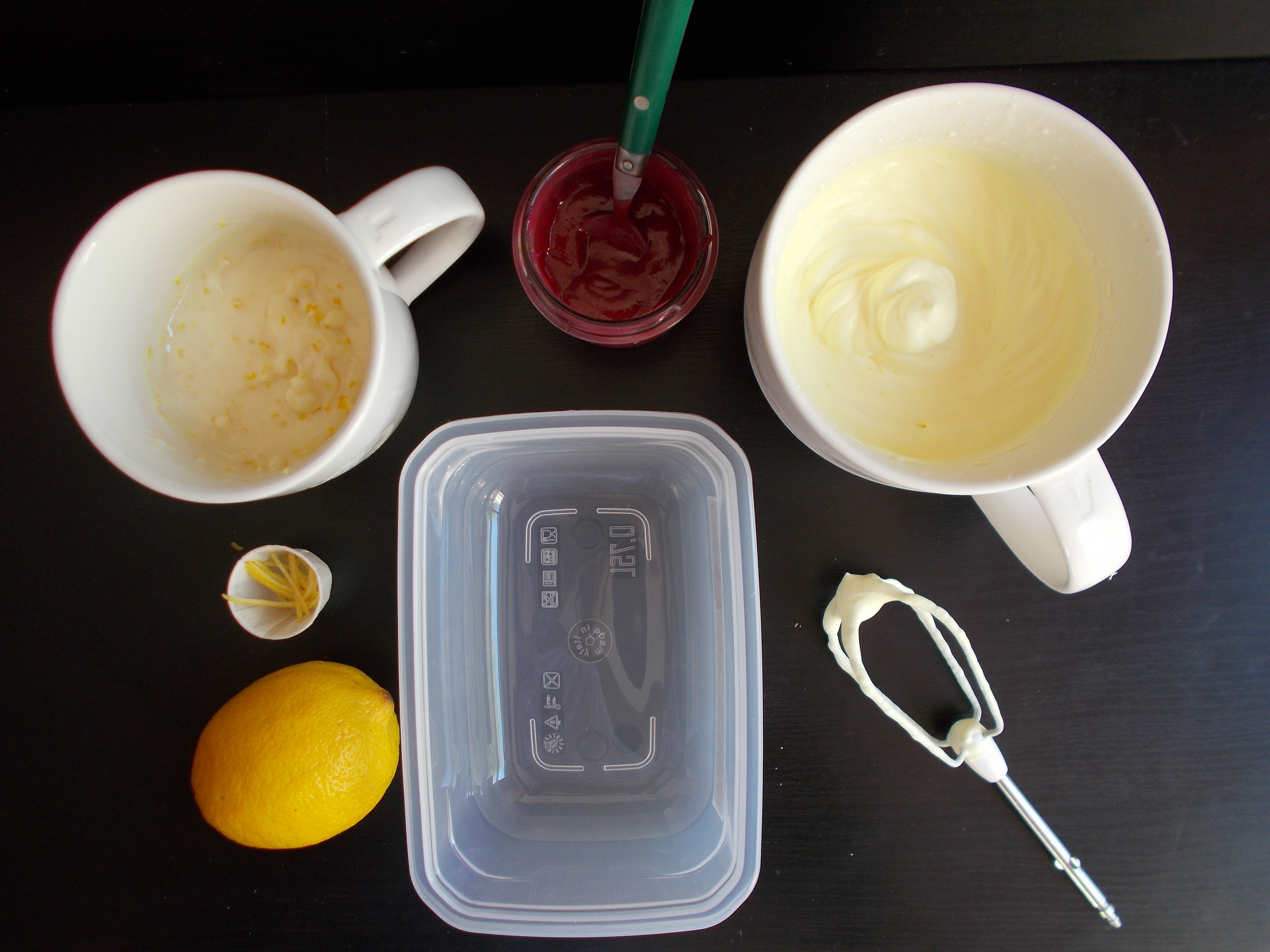 Même pas de lemon curd! Il n’y a pas d’oeuf dans ma glace. C’est juste du lait concentré mélangé à du jus de citron et un peu de zeste (enfin beaucoup me concernant ^^) et une belle chantilly bien ferme !