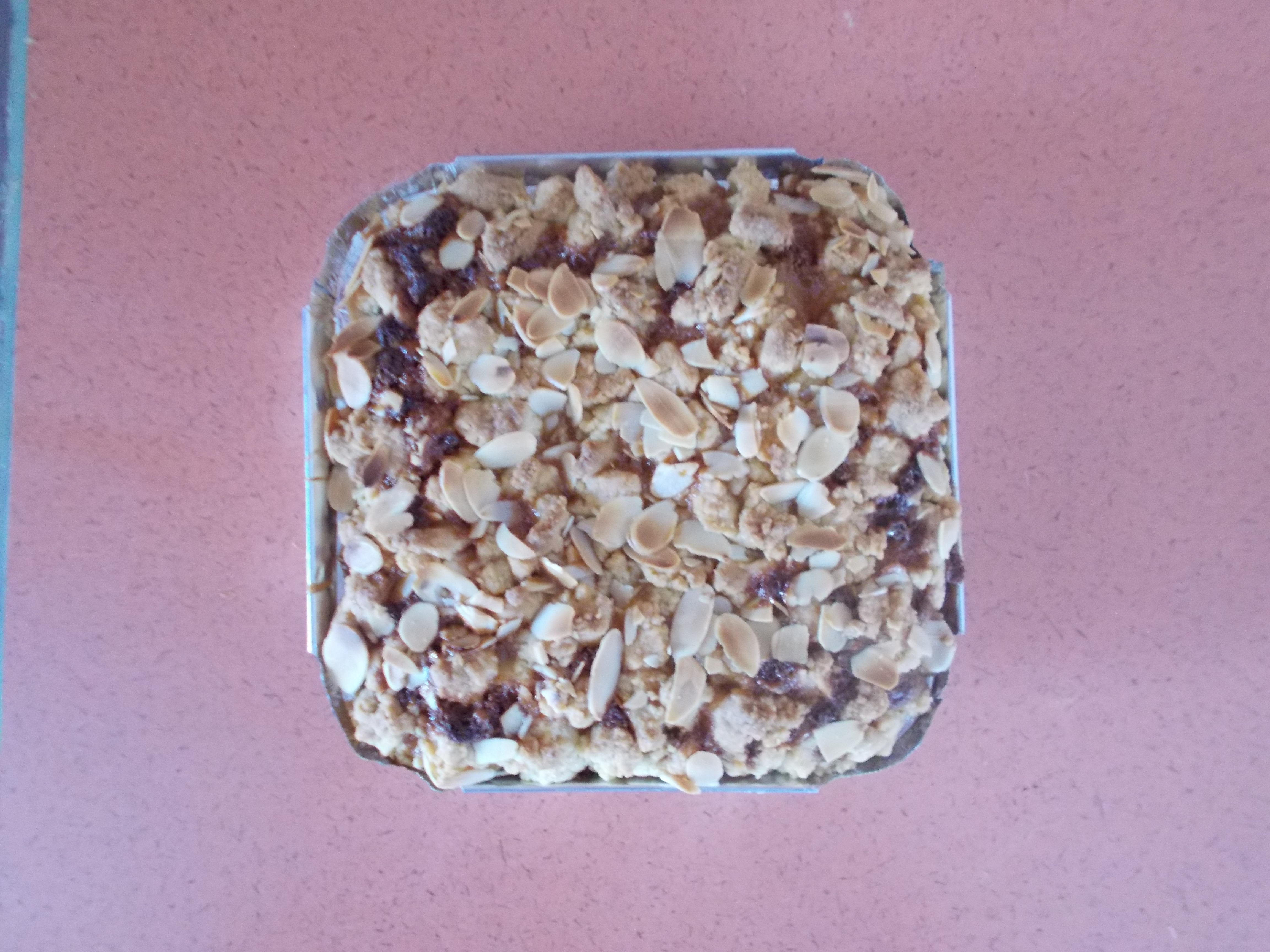 - Saupoudez avec 1 cas d’amande effilées puis le crumble et la cas restante d’amandes.