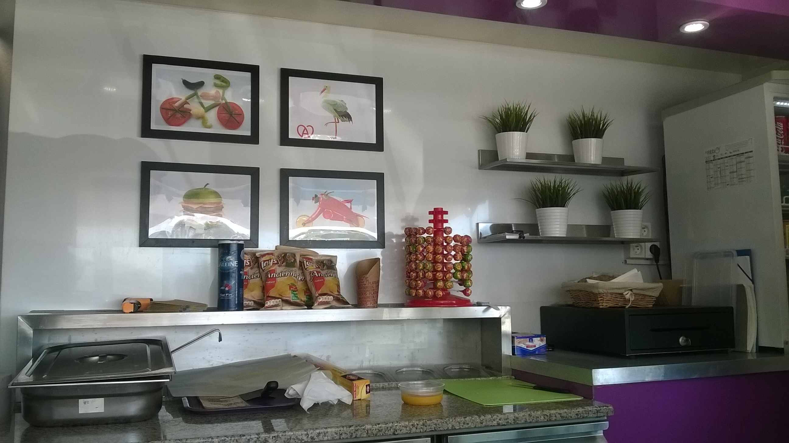 J’ai trouvé le service rapide. 5 min après avoir passé commande, nous avions nos wraps chauds en main. C’était bon. le goût était vraiment équilibré et le wrap tiède comme il faut. Mais je l’ai quand même trouvé un peu maigrichon et j’étais loin de me sentir calée. J’ai un peu cherché la sauce BBQ aussi.Les frites avait l’air bien appétissantes et croustillantes. Elles me mettaient l’eau à la bouche, mais il faisait un peu trop chaud pour que je me laisse tenter. La compote était rafraîchissante et légère, sans être trop sucrée. Exactement ce que j’attendais d’elle. En plus la portion était plutôt copieuse !