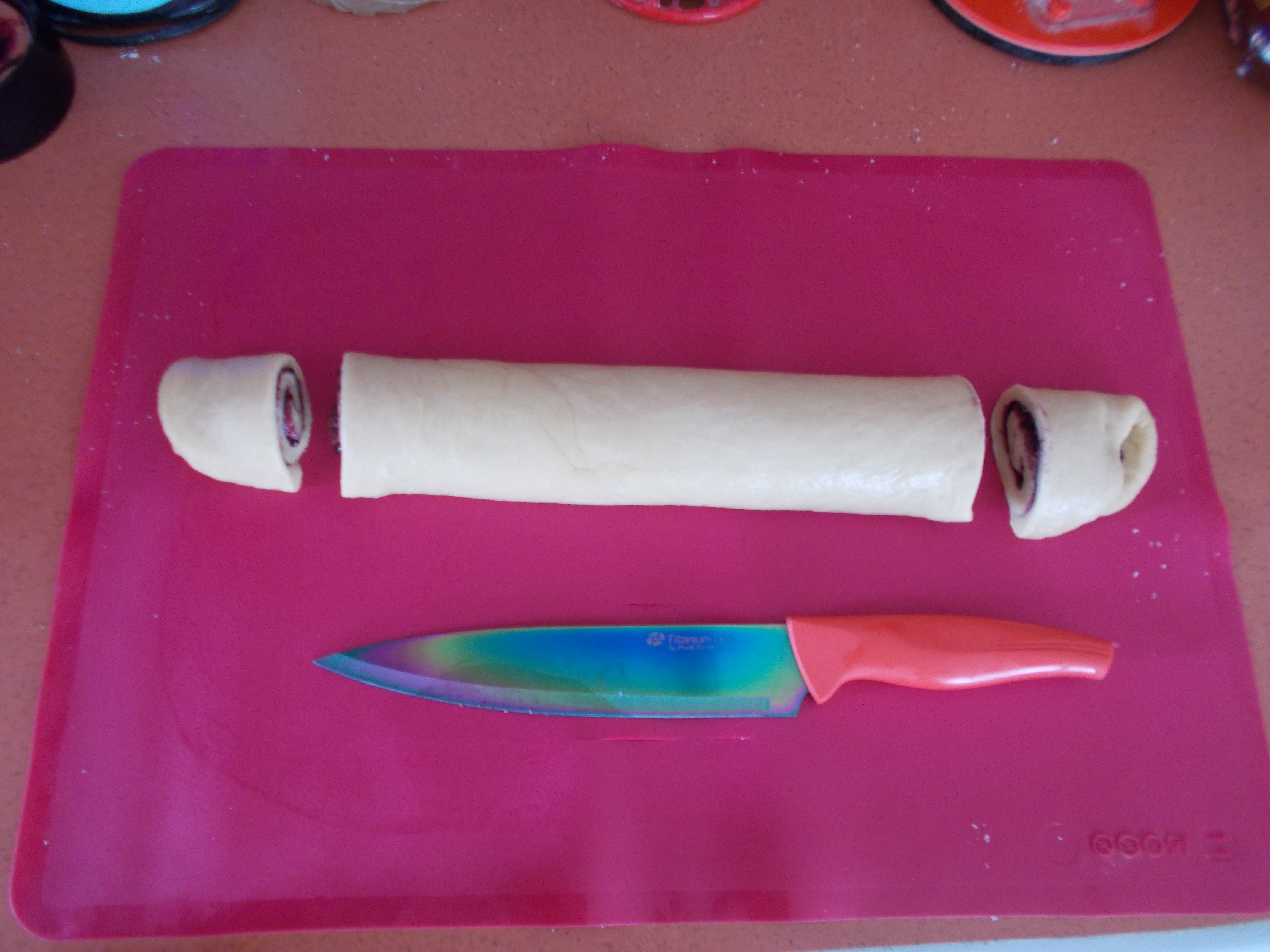 - Coupez les deux extrémités du boudin sur environ 5 cm. On a 2 escargots.
